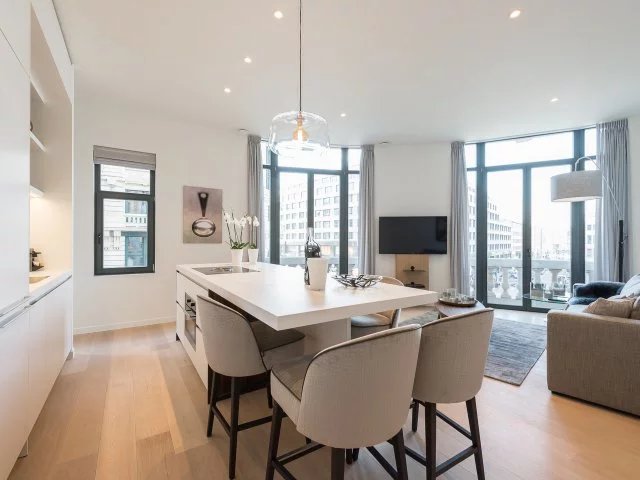 Dans un somptueux immeuble de coin des années 1930, parfaitement entretenu et empreint de caractère, superbe appartement 1 chambre situé au premier étage. Entièrement meublé avec du mobilier de luxe et des finitions haut de gamme, il offre une atmosphère élégante et raffinée.